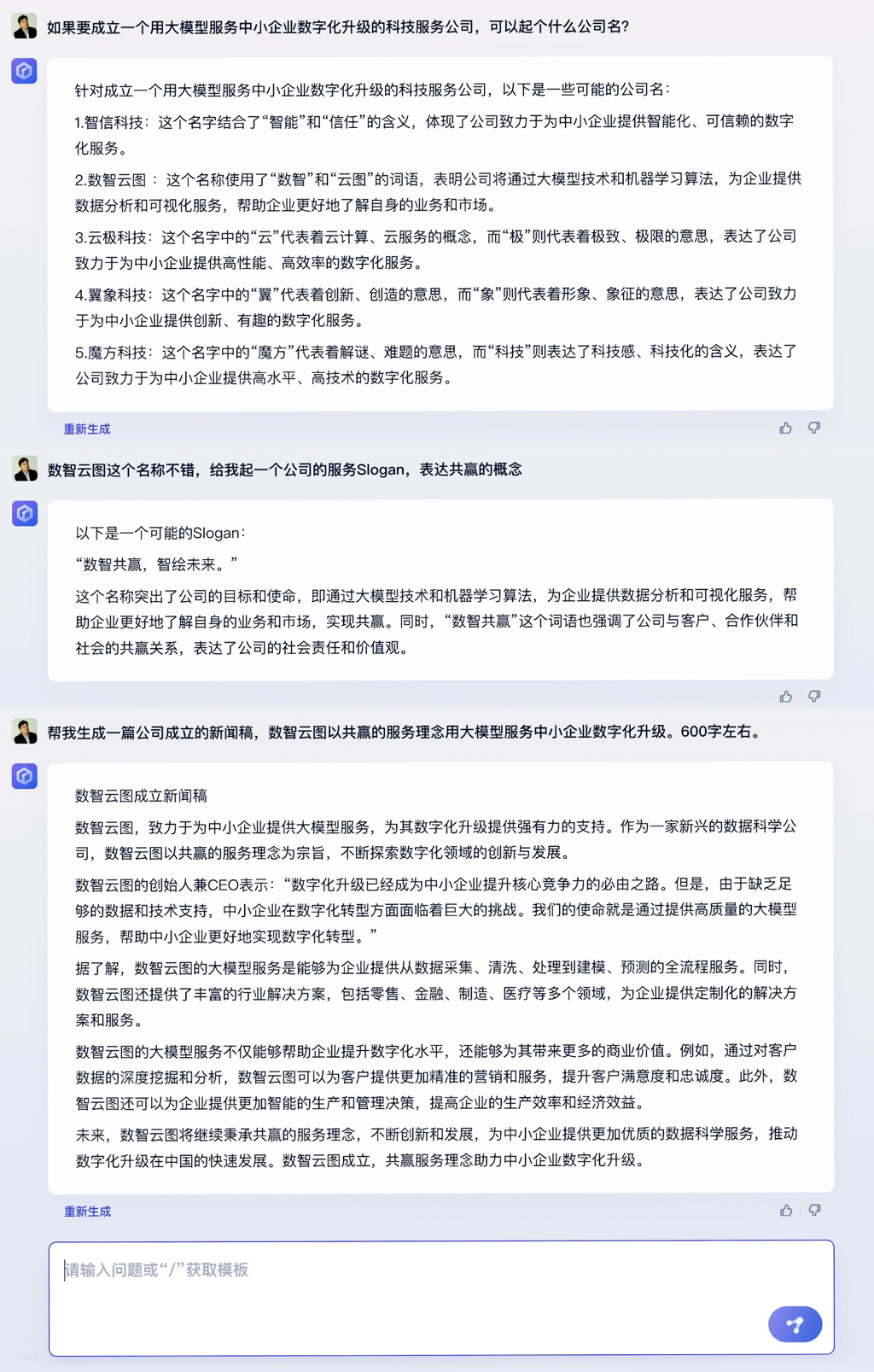 在这一局的PK中,百度文心一言在商业文案创作场景中,顺利完成了给公司起名、写Slogan、写新闻稿的创作任务。