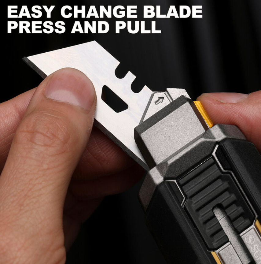 TOUGHBUILT拓必得变形工具刀,它独特创新的推收结构,使用者只需要简单地按下推钮往前推,就可以轻松把它从一把实用刀变形为一把刮刀,然后只需要简单地按下推钮往后推,又可以轻松把它从一把刮刀变形为一把实用刀。当刀处于实用刀状态时,只需要按下刀头上的换刀片按钮就可以轻松更换刀片。并且TOUGHBUILT拓必得的刀片几乎与所有其他实用刀兼容。