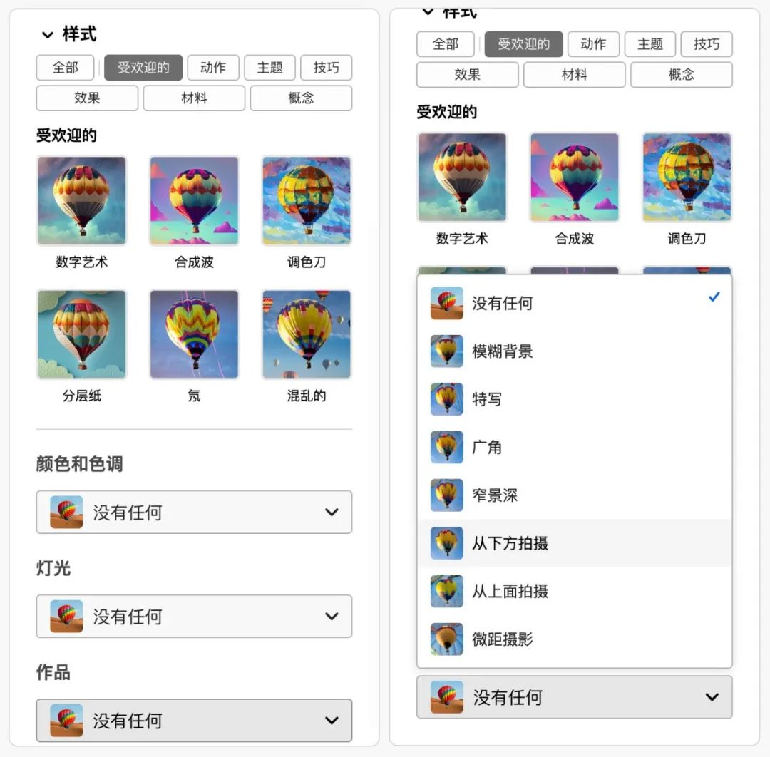 像 Midjourney 如果需要控制图片的风格需要自己手动搜索、并输入对应关键词