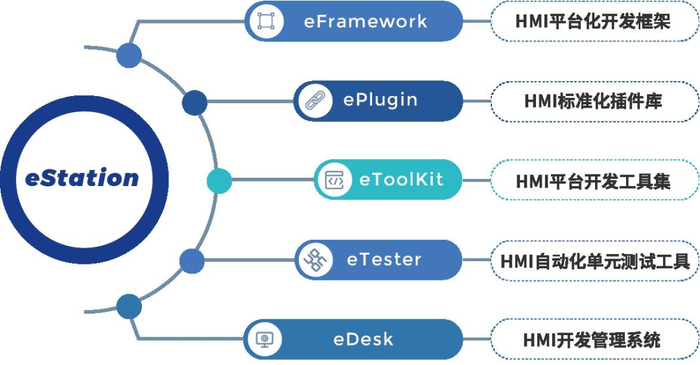 一站式智能座舱软件开发工具套件eStation:这是一款以需求为核心,面向智能座舱设计、软件开发、自动化测试过程的工具集,包含eFramework HMI开发框架中间件、ePlugin插件集、eToolKit开发工具集、eTester自动化测试工具等。eStation能够兼容不同车型和平台,帮助主机厂实现从需求到开发到测试到版本发布的自动化闭环管理,并有效解决在车型研发过程中“一平台开发多个车型”,以及管控多个Tier 1带来的平台/系统不兼容及重复工作的痛点。