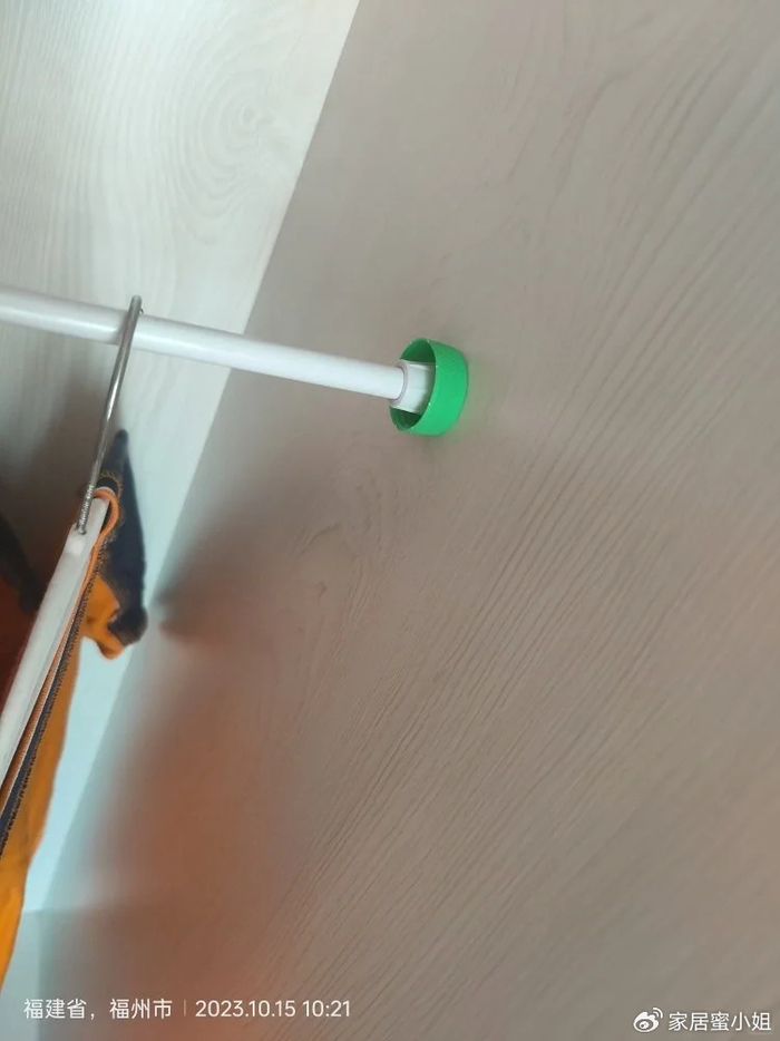 直接把饮料瓶盖打开,一个合适的小凹槽,然后固定在墙面,把伸缩杆的两边直接放在平肝当中就可以了,不用的时候还可以方便取一下来伸缩杆。