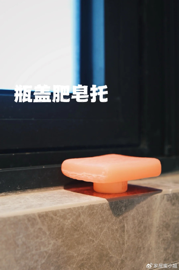 不用花钱去买肥皂盒,容易积水,而且放在台面上还占地方,其实一个饮料瓶盖就搞定,饮料瓶盖是不花钱的肥皂拖,
