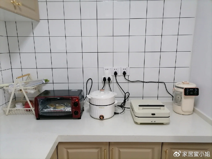 厨房里的电器每次使用的时候插在插座上,不用的时候取下来没有地方收纳特别麻烦,其实你可以将电源插头固定在插座旁边,