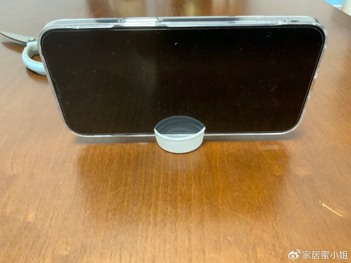 如果你没有手机支架,可以使用饮料瓶的盖子做一个支架,准备一个饮料瓶的盖子,然后在中间剪开一个适合手机大小的凹槽。