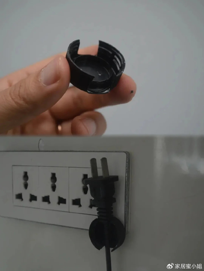 这样用的时候就更加方便,只需要使用到一个饮料瓶盖将两边刻出大小合适的卡槽,然后直接粘在插座边缘就可以。