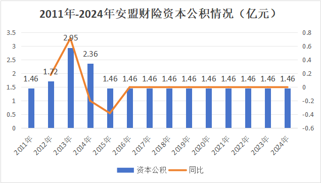而安盟财险的累计亏损主要来源于存续期间累计经营亏损。从该公司2024年年报资产负债表的数据来看,2024年累计亏损为1.66亿元。而此次资本公积补亏方案完成后,该公司累计亏损将降至0.2亿元以下。