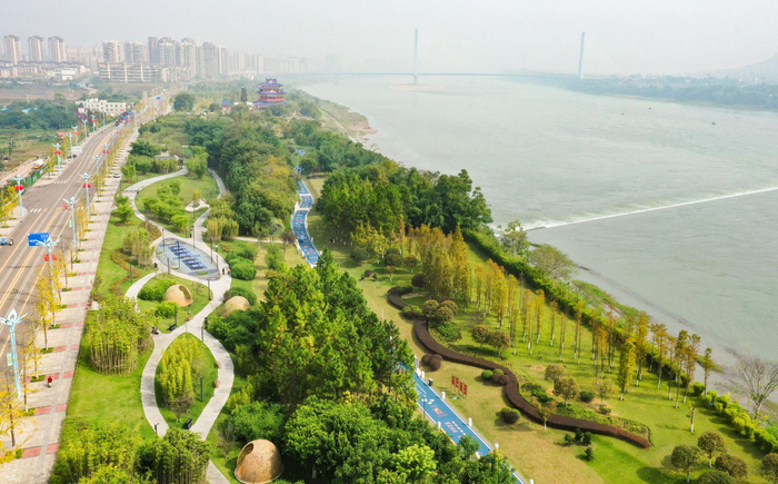(无人机拍摄的宜宾市南溪滨江湿地公园。新华社发)
