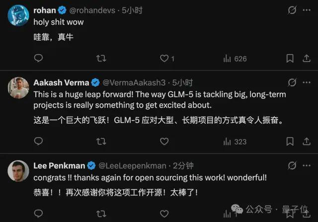 但毕竟Claude Opus是闭源,护城河一下子被GLM-5这个开源模型给端掉,也是引得不少网友欢呼: