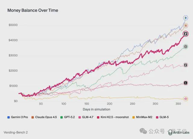 并且在衡量模型经营能力的Vending Bench 2中,GLM-5取得了开源第一的成绩: